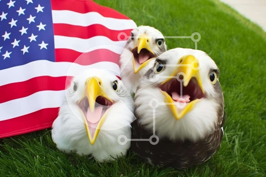Intra Συλλεκτικό Ξύλινο Παζλ Plywood 4mm - Πατριωτική σκηνή με τρεις φαλακρούς αετούς και αμερικανική σημαία Σε Ξύλινο Κουτί - Διαστάσεις: 10x10 cm – 25 κομμάτια