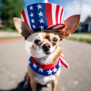 Intra Συλλεκτικό Ξύλινο Παζλ Plywood 4mm - Πατριωτικό μικρό σκυλί που γιορτάζει την 4η Ιουλίου Σε Ξύλινο Κουτί - Διαστάσεις: 10x10 cm – 25 κομμάτια