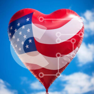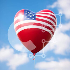 Intra Συλλεκτικό Ξύλινο Παζλ Plywood 4mm - Πατριωτικό μπαλόνι αμερικανικής σημαίας σε σχήμα καρδιάς Σε Ξύλινο Κουτί - Διαστάσεις Puzzle: 10x10 cm – 25 κομμάτια