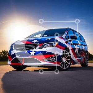 Intra Συλλεκτικό Ξύλινο Παζλ Plywood 4mm - Πατριωτικό μίνι βαν με αμερικανική σημαία Σε Ξύλινο Κουτί - Διαστάσεις Puzzle: 10x10 cm – 25 κομμάτια