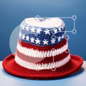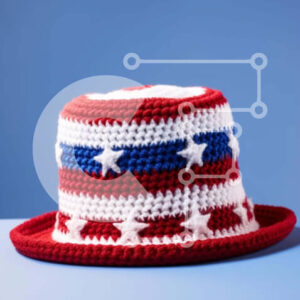 Intra Συλλεκτικό Ξύλινο Παζλ Plywood 4mm - Πατριωτικό κροσέ καπέλο με μοτίβο αμερικανικής σημαίας Σε Ξύλινο Κουτί - Διαστάσεις Puzzle: 10x10 cm – 25 κομμάτια