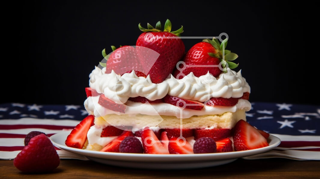 Intra Συλλεκτικό Ξύλινο Παζλ Plywood 4mm - Πατριωτικό λευκό κέικ με φράουλες και αμερικανική σημαία Σε Ξύλινο Κουτί - Διαστάσεις: 10x10 cm – 25 κομμάτια