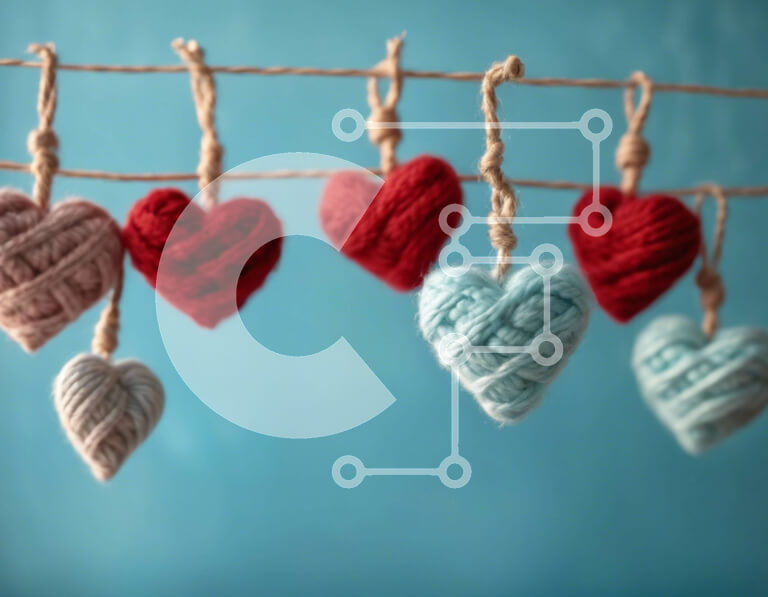 Intra Συλλεκτικό Ξύλινο Παζλ Plywood 4mm - Πλεκτά διακοσμητικά καρδιάς σε μπλε φόντο Σε Ξύλινο Κουτί - Διαστάσεις Puzzle: 10x10 cm – 25 κομμάτια