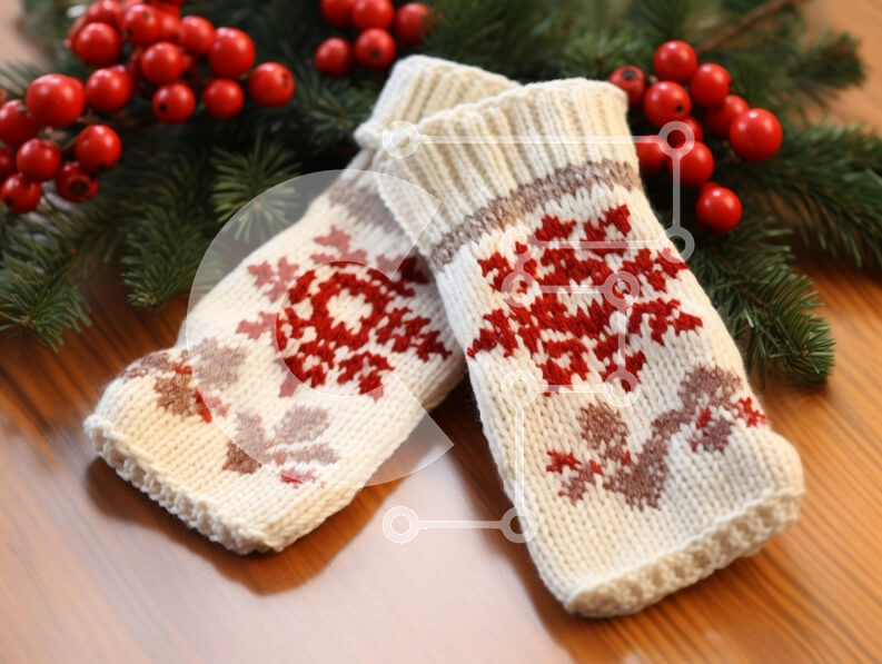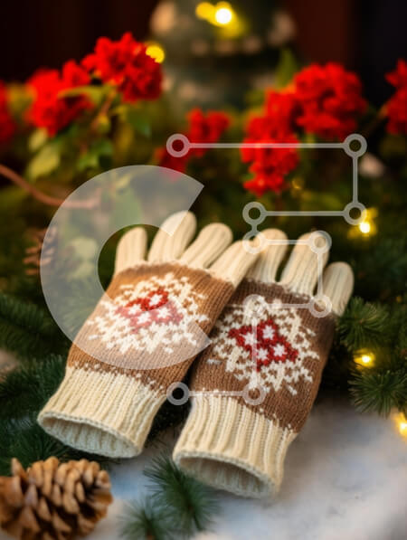 Intra Συλλεκτικό Ξύλινο Παζλ Plywood 4mm - Πλεκτά γάντια με φλοράλ μοτίβα και γιορτινά διακοσμητικά Σε Ξύλινο Κουτί - Διαστάσεις: 10x10 cm – 25 κομμάτια