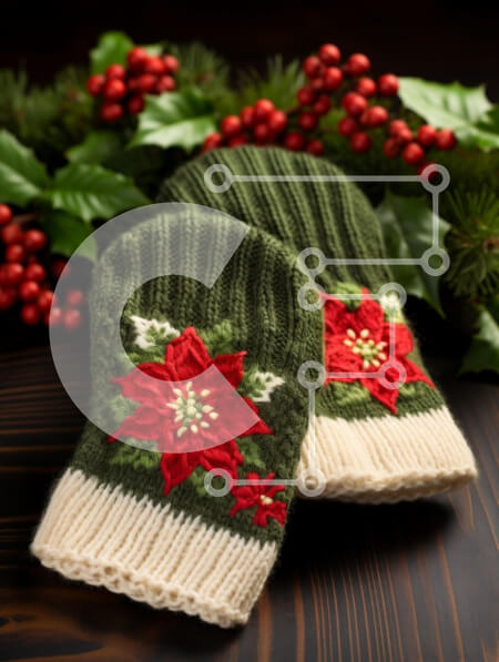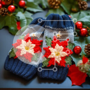 Intra Συλλεκτικό Ξύλινο Παζλ Plywood 4mm - Πλεκτά γάντια με σχέδιο Poinsettia για τις γιορτές Σε Ξύλινο Κουτί - Διαστάσεις: 10x10 cm – 25 κομμάτια