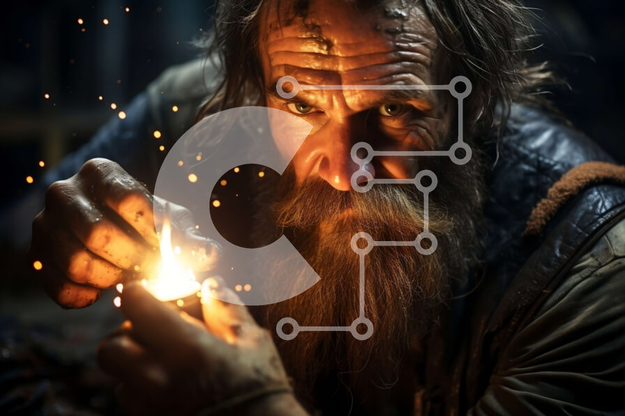 Intra Συλλεκτικό Ξύλινο Παζλ Plywood 4mm - Πορτρέτο ενός σοβαρού άνδρα με μακριά μαλλιά και γένια με μαύρα ρούχα Σε Ξύλινο Κουτί - Διαστάσεις Puzzle: 10x10 cm – 25 κομμάτια