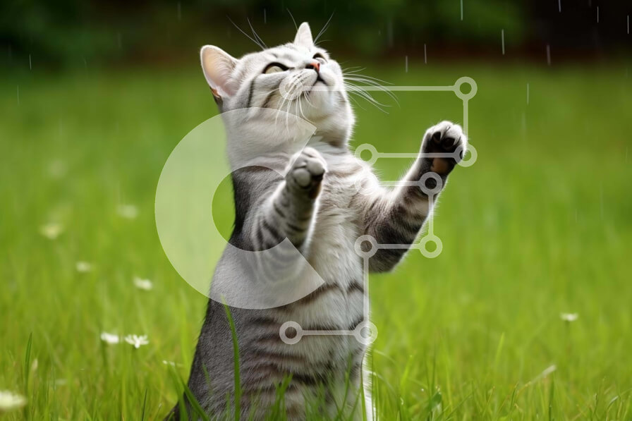 Intra Συλλεκτικό Ξύλινο Παζλ Plywood 4mm - Παιχνιδιάρικη γκρι και λευκή γάτα στη βροχή Σε Ξύλινο Κουτί - Διαστάσεις: 10x10 cm – 25 κομμάτια