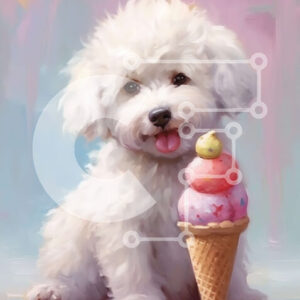 Intra Συλλεκτικό Ξύλινο Παζλ Plywood 4mm - Παιχνιδιάρικη εικόνα ενός μικρού λευκού σκύλου που απολαμβάνει ένα χωνάκι παγωτού Σε Ξύλινο Κουτί - Διαστάσεις: 10x10 cm – 25 κομμάτια