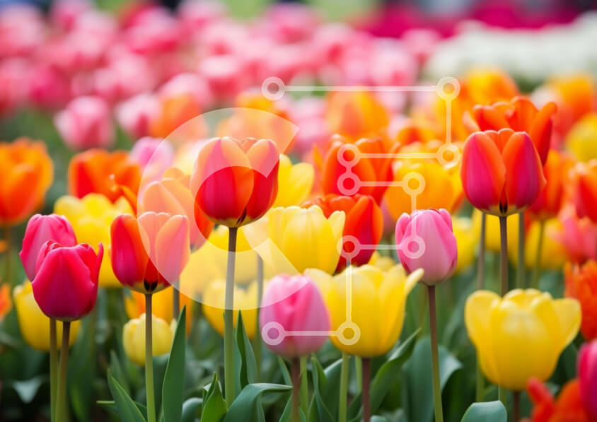 Intra Συλλεκτικό Ξύλινο Παζλ Plywood 4mm - Πεδίο με πολύχρωμες τουλίπες και διάφορα λουλούδια Σε Ξύλινο Κουτί - Διαστάσεις: 10x10 cm – 25 κομμάτια