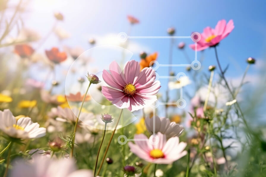 Intra Συλλεκτικό Ξύλινο Παζλ Plywood 4mm - Πεδίο με πολύχρωμα αγριολούλουδα μια ηλιόλουστη μέρα Σε Ξύλινο Κουτί - Διαστάσεις: 10x10 cm – 25 κομμάτια