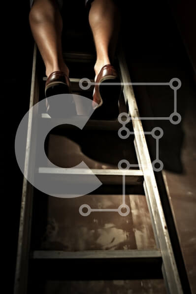 Intra Συλλεκτικό Ξύλινο Παζλ Plywood 4mm - Πόδια σε μια σκάλα σε ημίφως Σε Ξύλινο Κουτί - Διαστάσεις Puzzle: 10x10 cm – 25 κομμάτια