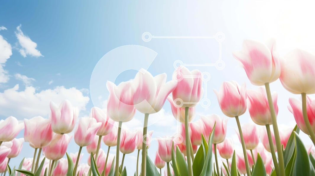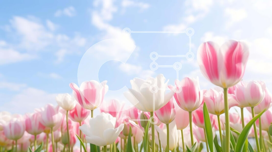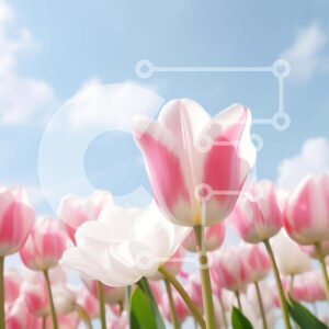 Intra Συλλεκτικό Ξύλινο Παζλ Plywood 4mm - Πεδίο με ροζ και λευκές τουλίπες σε πλήρη άνθιση Σε Ξύλινο Κουτί - Διαστάσεις: 10x10 cm – 25 κομμάτια