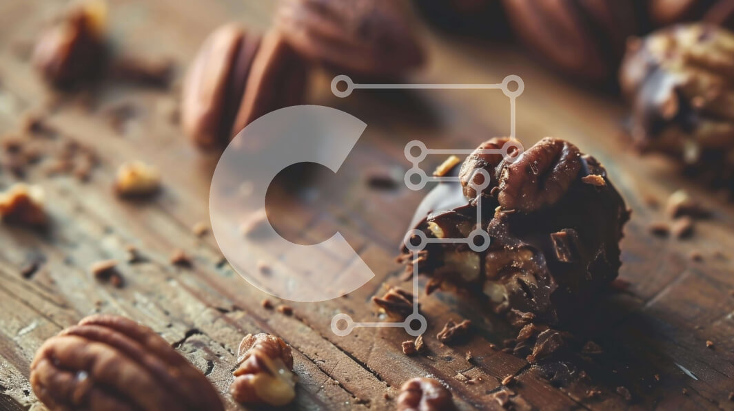 Intra Συλλεκτικό Ξύλινο Παζλ Plywood 4mm - Πεκάν καλυμμένα με σοκολάτα σε ξύλινο τραπέζι Σε Ξύλινο Κουτί - Διαστάσεις: 10x10 cm – 25 κομμάτια