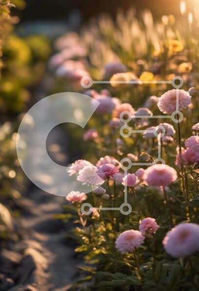 Intra Συλλεκτικό Ξύλινο Παζλ Plywood 4mm - Πεδίο με ροζ παιώνιες σε πλήρη άνθιση Σε Ξύλινο Κουτί - Διαστάσεις: 10x10 cm – 25 κομμάτια