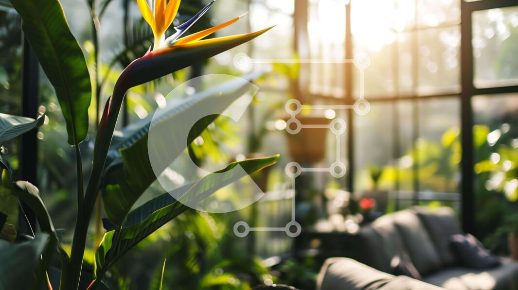 Intra Συλλεκτικό Ξύλινο Παζλ Plywood 4mm - Σαλόνι γεμάτο πράσινο με φυτό Bird of Paradise Σε Ξύλινο Κουτί - Διαστάσεις Puzzle: 10x10 cm – 25 κομμάτια