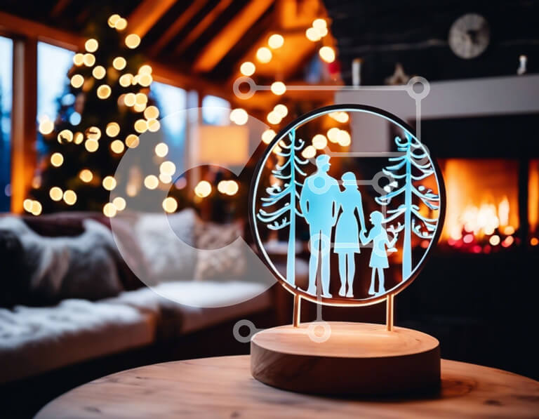 Intra Συλλεκτικό Ξύλινο Παζλ Plywood 4mm - Σαλόνι διακοσμημένο για την εορταστική περίοδο με φωτισμένο χριστουγεννιάτικο δέντρο Σε Ξύλινο Κουτί - Διαστάσεις Puzzle: 10x10 cm – 25 κομμάτια