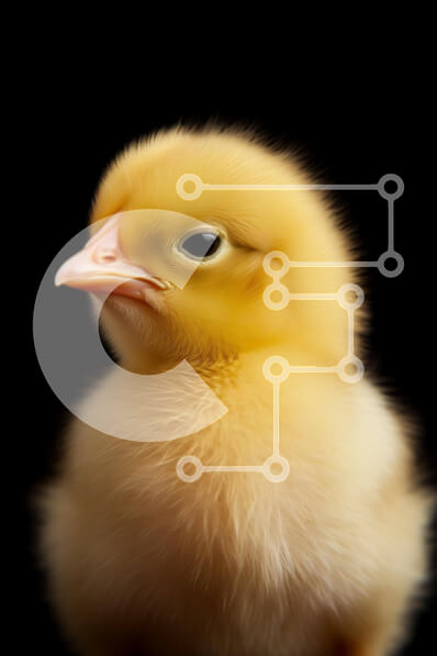 Intra Συλλεκτικό Ξύλινο Παζλ Plywood 4mm - Περίεργο κίτρινο κοτόπουλο σε σκούρο φόντο Σε Ξύλινο Κουτί - Διαστάσεις: 10x10 cm – 25 κομμάτια