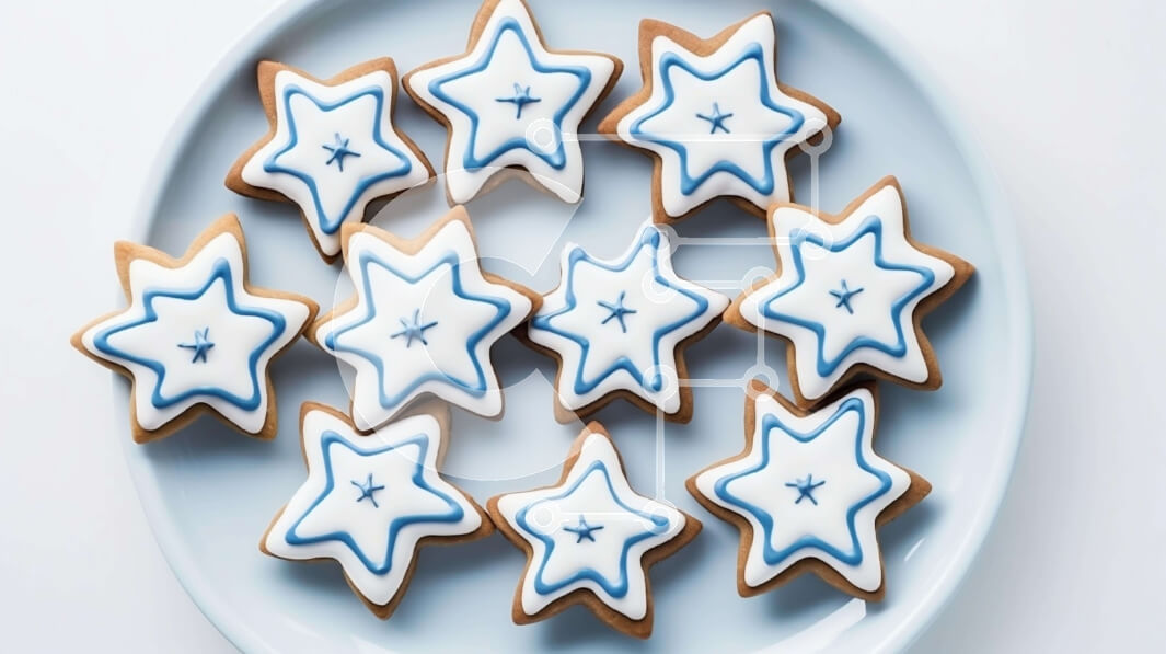 Intra Συλλεκτικό Ξύλινο Παζλ Plywood 4mm - Πιάτο με μπισκότα σε σχήμα μπλε και λευκού αστεριού Σε Ξύλινο Κουτί - Διαστάσεις: 10x10 cm – 25 κομμάτια