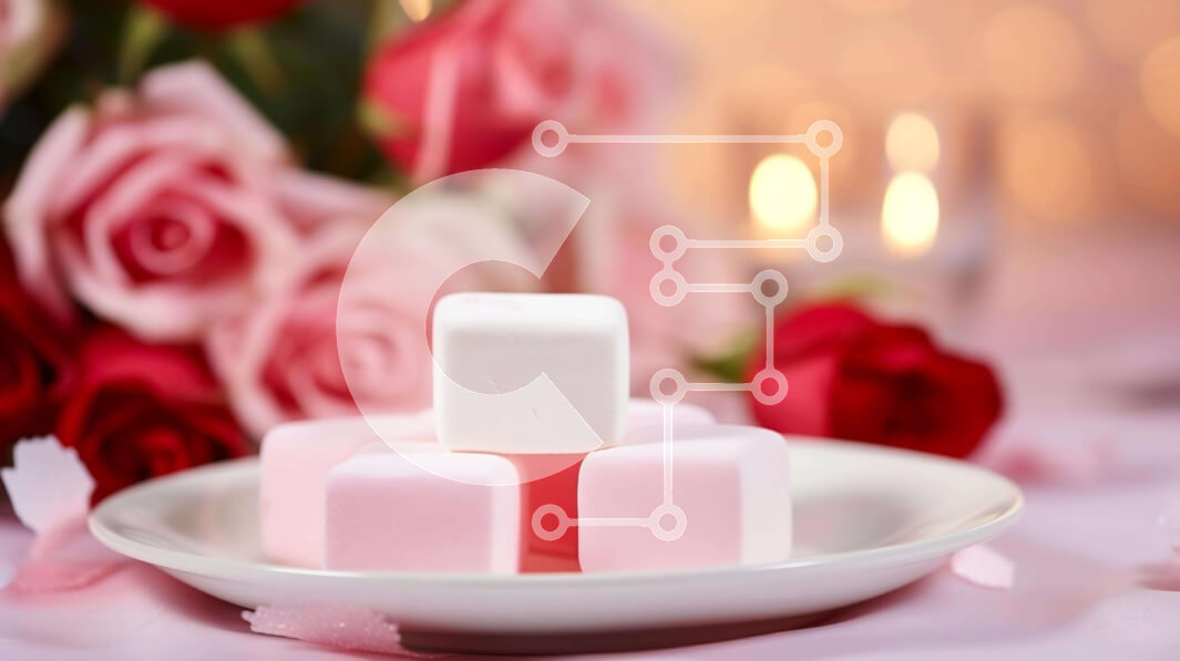 Intra Συλλεκτικό Ξύλινο Παζλ Plywood 4mm - Πιάτο με ροζ και λευκά marshmallows με κόκκινα τριαντάφυλλα Σε Ξύλινο Κουτί - Διαστάσεις: 10x10 cm – 25 κομμάτια
