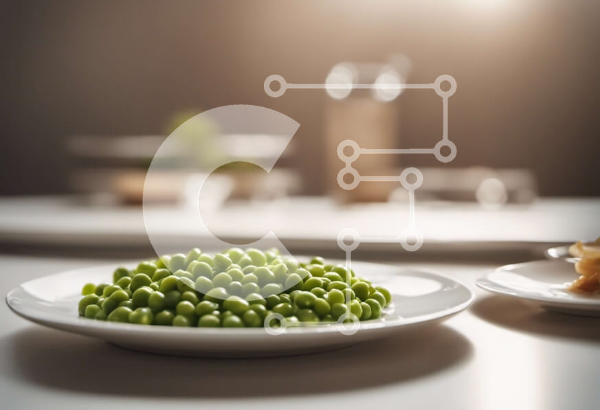 Intra Συλλεκτικό Ξύλινο Παζλ Plywood 4mm - Πιάτο με πράσινα μπιζέλια σε ένα άσπρο τραπεζομάντιλο Σε Ξύλινο Κουτί - Διαστάσεις: 10x10 cm – 25 κομμάτια