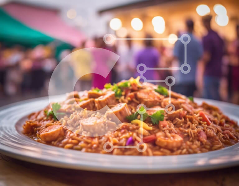 Intra Συλλεκτικό Ξύλινο Παζλ Plywood 4mm - Πιάτο με ρύζι και λουκάνικο σε μια υπαίθρια εκδήλωση Σε Ξύλινο Κουτί - Διαστάσεις: 10x10 cm – 25 κομμάτια