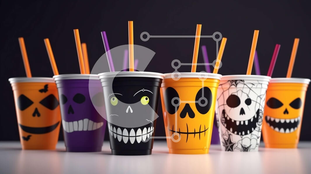 Intra Συλλεκτικό Ξύλινο Παζλ Plywood 4mm - Πλαστικά κύπελλα με θέμα το Halloween με καλαμάκια και κοψίματα κολοκύθας Σε Ξύλινο Κουτί - Διαστάσεις Puzzle: 10x10 cm – 25 κομμάτια