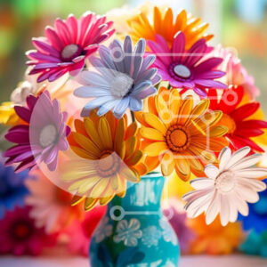 Intra Συλλεκτικό Ξύλινο Παζλ Plywood 4mm - Πολύχρωμα χάρτινα λουλούδια σε μπλε βάζο Σε Ξύλινο Κουτί - Διαστάσεις Puzzle: 10x10 cm – 25 κομμάτια