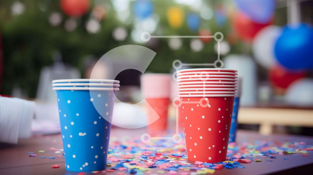 Intra Συλλεκτικό Ξύλινο Παζλ Plywood 4mm - Πολύχρωμα χάρτινα ποτήρια στο τραπέζι με κομφετί Σε Ξύλινο Κουτί - Διαστάσεις Puzzle: 10x10 cm – 25 κομμάτια
