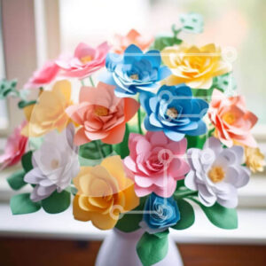 Intra Συλλεκτικό Ξύλινο Παζλ Plywood 4mm - Πολύχρωμα χάρτινα λουλούδια σε λευκό βάζο Σε Ξύλινο Κουτί - Διαστάσεις Puzzle: 10x10 cm – 25 κομμάτια