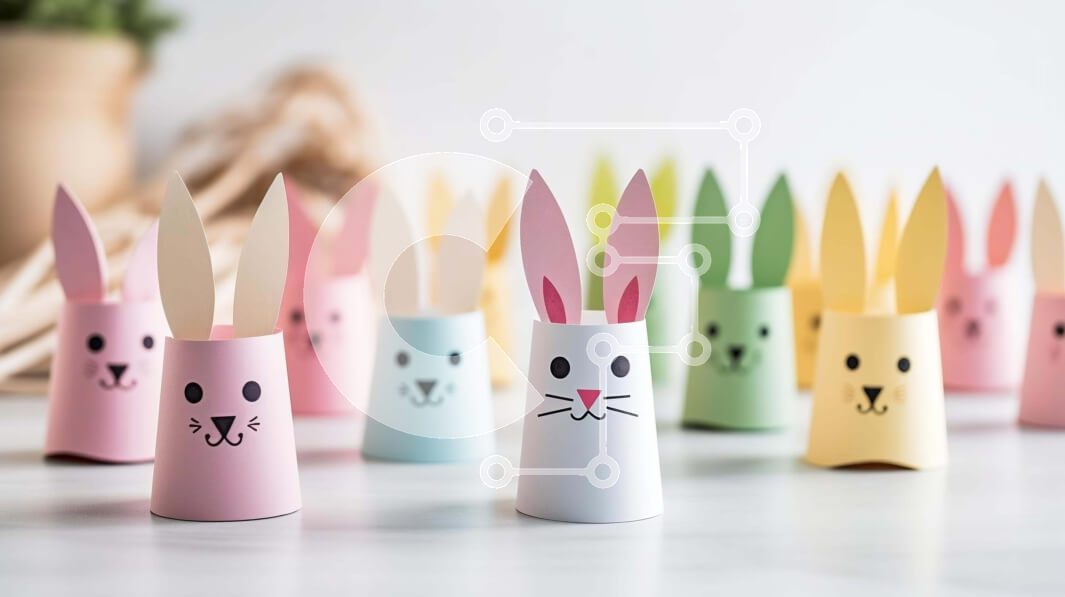Intra Συλλεκτικό Ξύλινο Παζλ Plywood 4mm - Πολύχρωμα χάρτινα ποτήρια πασχαλινών λαγουδάκι Σε Ξύλινο Κουτί - Διαστάσεις Puzzle: 10x10 cm – 25 κομμάτια