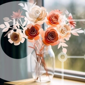 Intra Συλλεκτικό Ξύλινο Παζλ Plywood 4mm - Πολύχρωμα χάρτινα λουλούδια σε λευκό βάζο σε ανοιχτό παράθυρο Σε Ξύλινο Κουτί - Διαστάσεις Puzzle: 10x10 cm – 25 κομμάτια