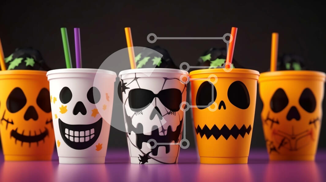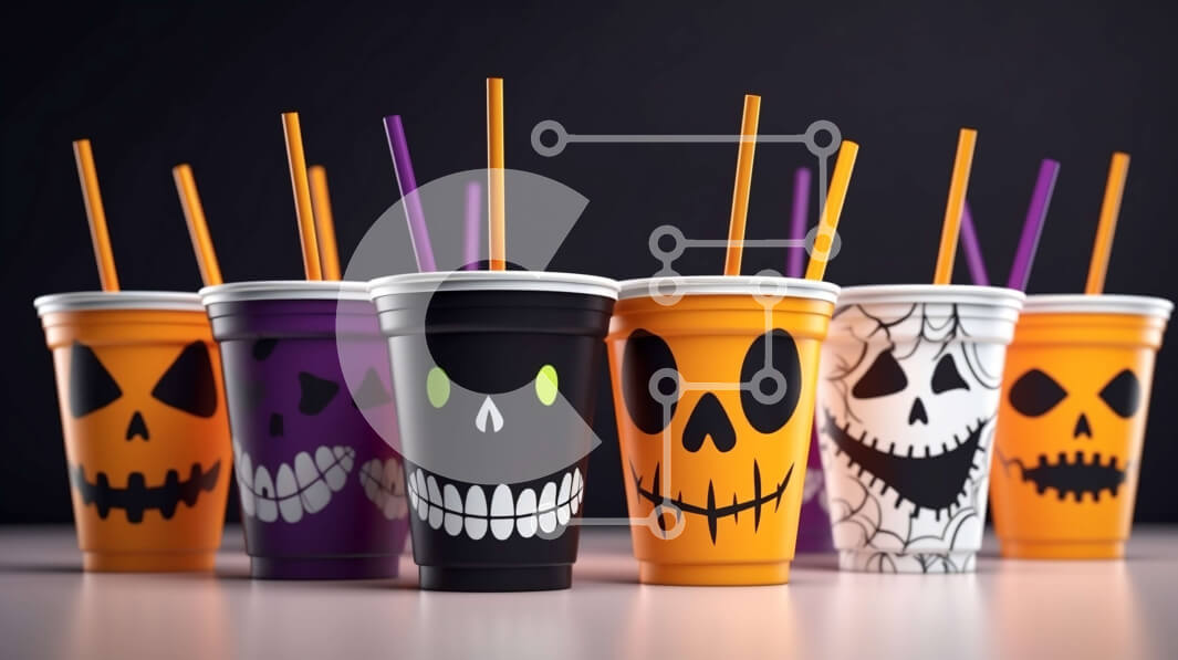 Intra Συλλεκτικό Ξύλινο Παζλ Plywood 4mm - Πλαστικά ποτήρια με καλαμάκια με θέμα το Halloween Σε Ξύλινο Κουτί - Διαστάσεις Puzzle: 10x10 cm – 25 κομμάτια