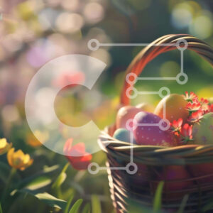 Intra Συλλεκτικό Ξύλινο Παζλ Plywood 4mm - Πολύχρωμα Πασχαλινά αυγά στο καλάθι του κήπου με λουλούδια Σε Ξύλινο Κουτί - Διαστάσεις Puzzle: 10x10 cm – 25 κομμάτια