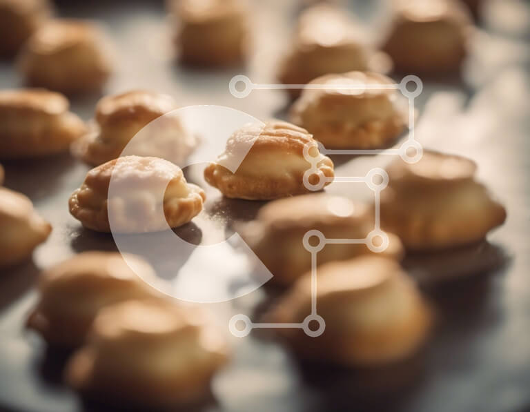 Intra Συλλεκτικό Ξύλινο Παζλ Plywood 4mm - Ποικιλία αρτοσκευασμάτων σε λευκό δίσκο με γαρνιτούρα μαϊντανού Σε Ξύλινο Κουτί - Διαστάσεις: 10x10 cm – 25 κομμάτια