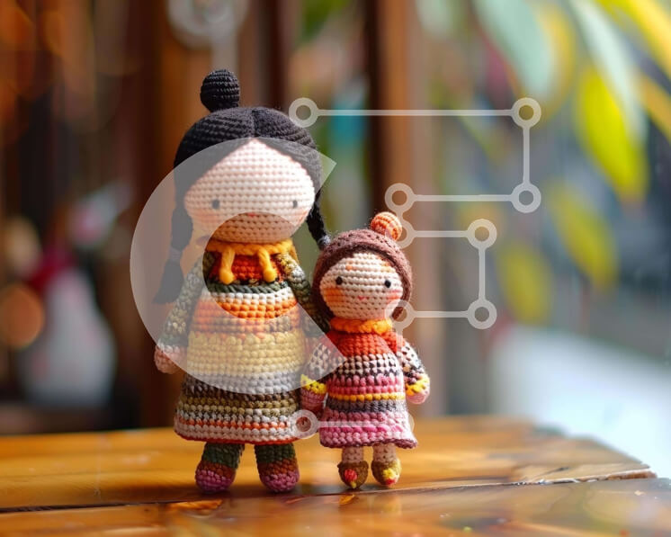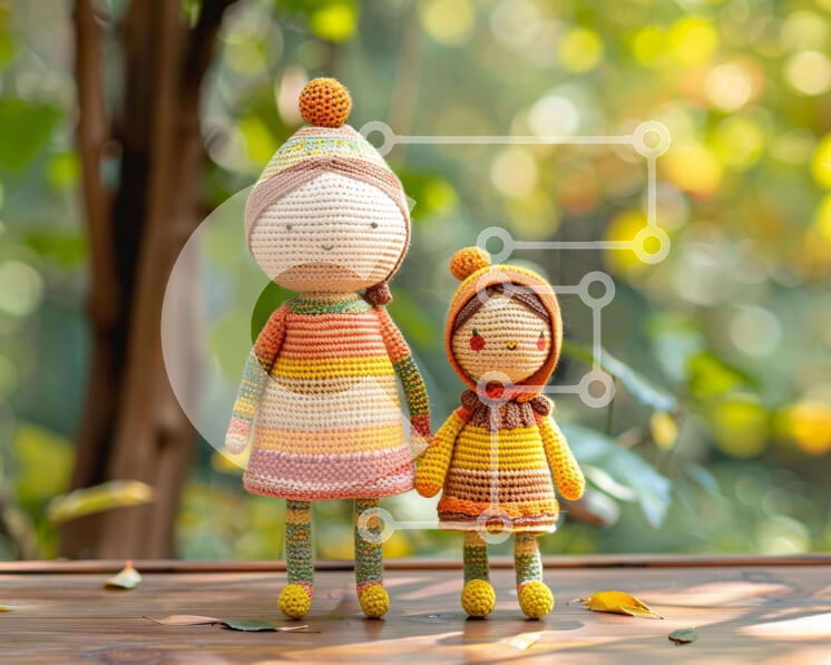 Intra Συλλεκτικό Ξύλινο Παζλ Plywood 4mm - Πολύχρωμες κροσέ κούκλες σε ξύλινο τραπέζι Σε Ξύλινο Κουτί - Διαστάσεις: 10x10 cm – 25 κομμάτια