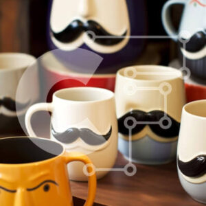 Intra Συλλεκτικό Ξύλινο Παζλ Plywood 4mm - Πολύχρωμες κούπες καφέ με μουστάκια Σε Ξύλινο Κουτί - Διαστάσεις: 10x10 cm – 25 κομμάτια