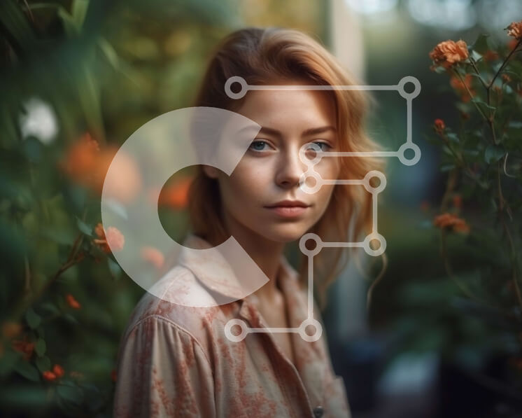 Intra Συλλεκτικό Ξύλινο Παζλ Plywood 4mm - Πορτρέτο μιας νεαρής γυναίκας με μακριά κόκκινα μαλλιά μπροστά από τον πορτοκαλί κήπο με λουλούδια Σε Ξύλινο Κουτί - Διαστάσεις Puzzle: 10x10 cm – 25 κομμάτια