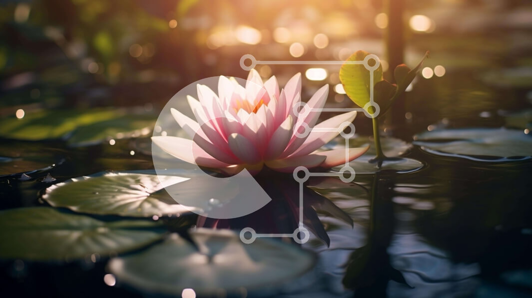 Intra Συλλεκτικό Ξύλινο Παζλ Plywood 4mm - Ροζ νούφαρο στη λίμνη με την αντανάκλαση του ηλιακού φωτός Σε Ξύλινο Κουτί - Διαστάσεις: 10x10 cm – 25 κομμάτια