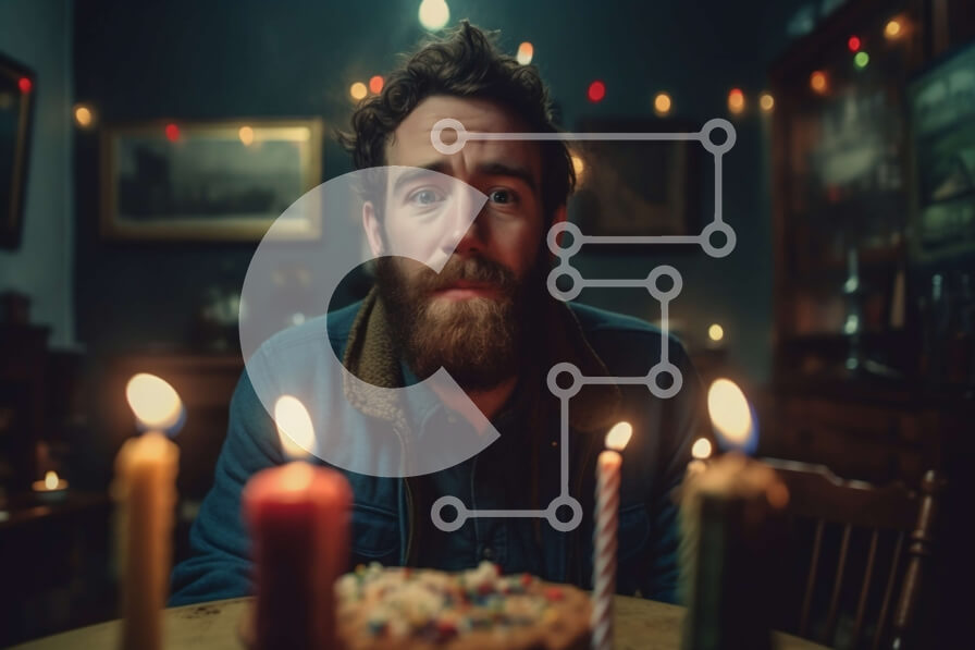 Intra Συλλεκτικό Ξύλινο Παζλ Plywood 4mm - Σοβαρός άνδρας με γένια που γιορτάζει με τούρτα Σε Ξύλινο Κουτί - Διαστάσεις: 10x10 cm – 25 κομμάτια