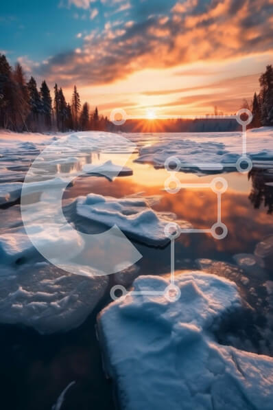 Intra Συλλεκτικό Ξύλινο Παζλ Plywood 4mm - Όμορφη εικόνα μιας παγωμένης λίμνης στο ηλιοβασίλεμα Σε Ξύλινο Κουτί - Διαστάσεις: 10x10 cm – 25 κομμάτια