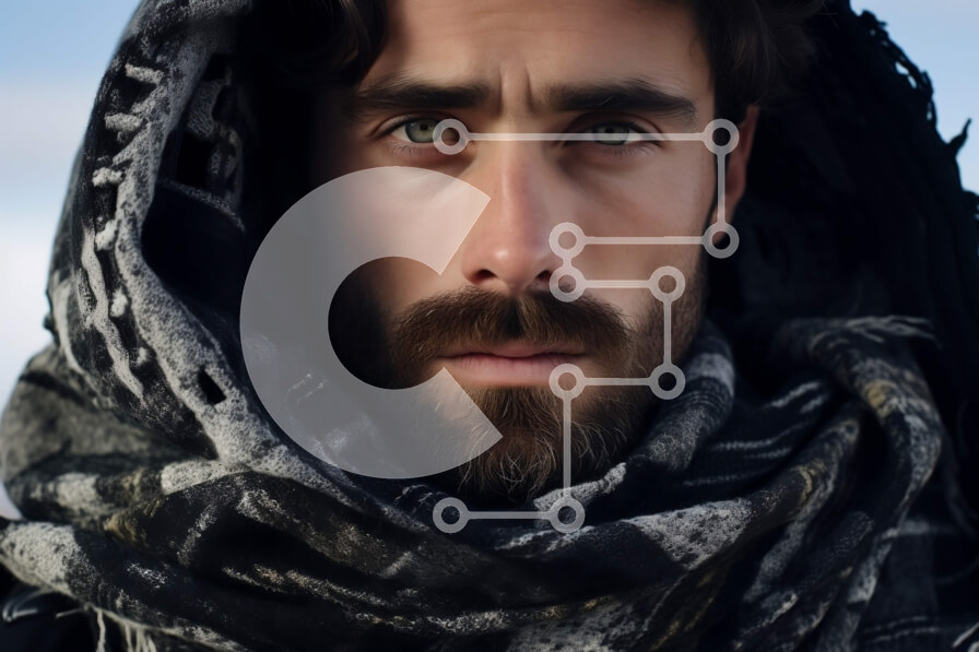 Intra Συλλεκτικό Ξύλινο Παζλ Plywood 4mm - Σοβαρός άνδρας με κουκούλα και μούσι να κοιτάζει την κάμερα Σε Ξύλινο Κουτί - Διαστάσεις Puzzle: 10x10 cm – 25 κομμάτια