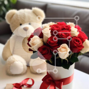 Intra Συλλεκτικό Ξύλινο Παζλ Plywood 4mm - Ρομαντικά δώρα του Αγίου Βαλεντίνου με αρκουδάκι και τριαντάφυλλα Σε Ξύλινο Κουτί - Διαστάσεις: 10x10 cm – 25 κομμάτια