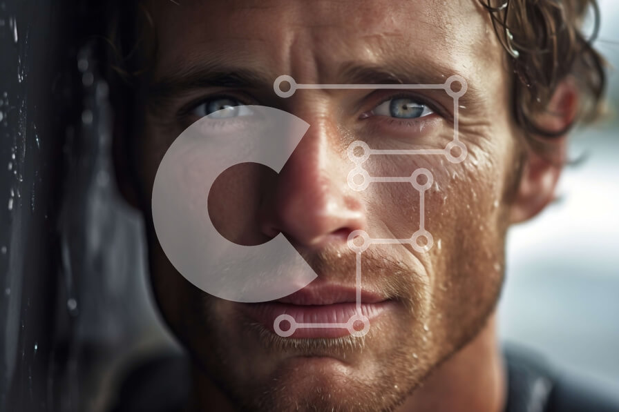 Intra Συλλεκτικό Ξύλινο Παζλ Plywood 4mm - Σοβαρός άνδρας με μαύρο δερμάτινο μπουφάν με σταγονίδια νερού στο πρόσωπο και στα μαλλιά Σε Ξύλινο Κουτί - Διαστάσεις Puzzle: 10x10 cm – 25 κομμάτια