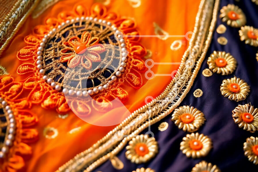 Intra Συλλεκτικό Ξύλινο Παζλ Plywood 4mm - Πολυτελές πορτοκαλί και χρυσό Sari με περίπλοκα κεντήματα και χάντρες Σε Ξύλινο Κουτί - Διαστάσεις Puzzle: 10x10 cm – 25 κομμάτια