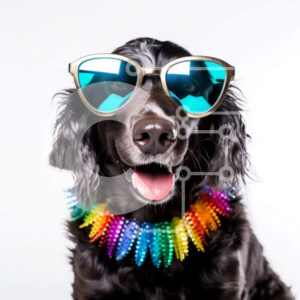 Intra Συλλεκτικό Ξύλινο Παζλ Plywood 4mm - Πολύχρωμα αξεσουάρ για σκύλους: Happy Black Dog με γυαλιά ηλίου και κολάρο ουράνιο τόξο Σε Ξύλινο Κουτί - Διαστάσεις: 10x10 cm – 25 κομμάτια