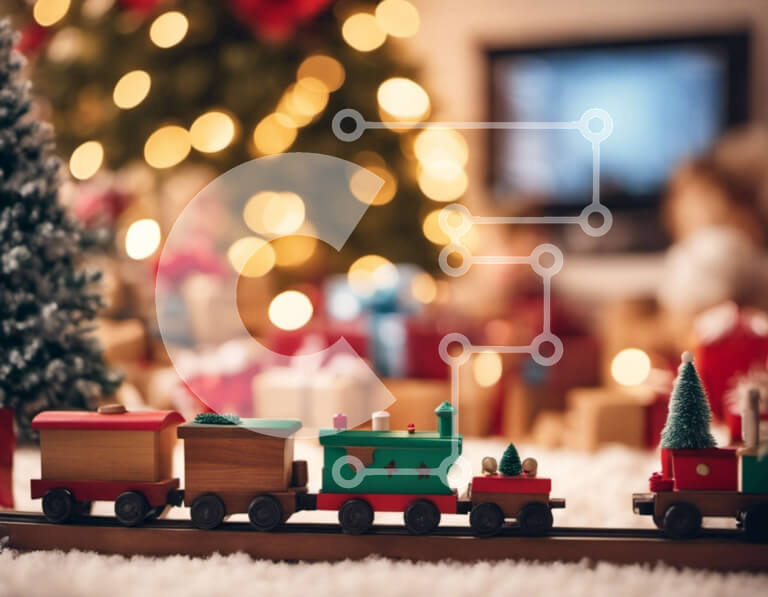 Intra Συλλεκτικό Ξύλινο Παζλ Plywood 4mm - Παιχνίδι τρένο μπροστά από το χριστουγεννιάτικο δέντρο Σε Ξύλινο Κουτί - Διαστάσεις: 10x10 cm – 25 κομμάτια