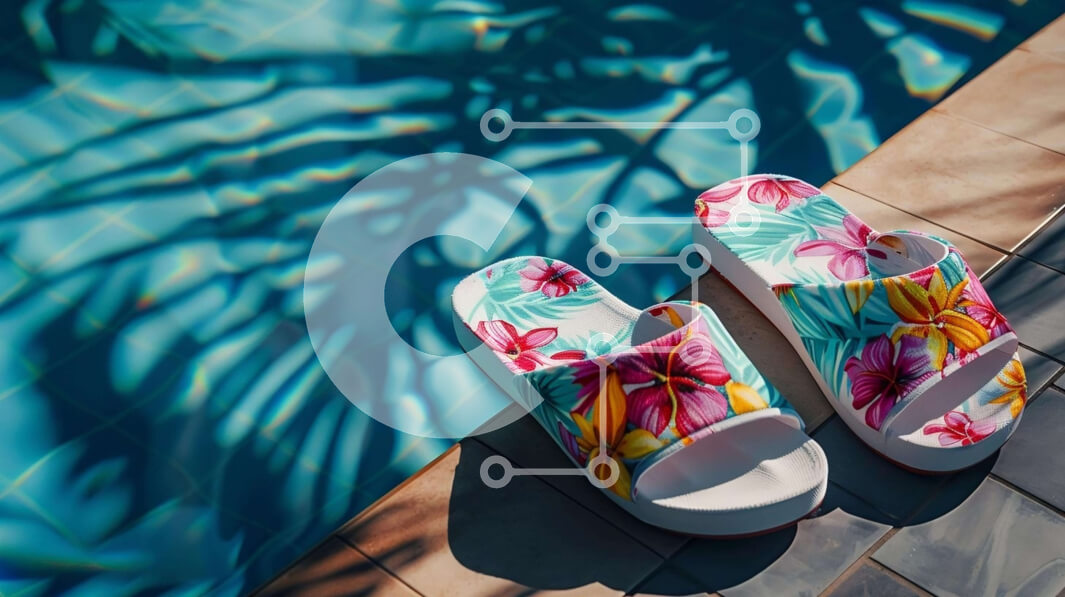 Intra Συλλεκτικό Ξύλινο Παζλ Plywood 4mm - Πολύχρωμες φλοράλ παντόφλες δίπλα στην πισίνα Σε Ξύλινο Κουτί - Διαστάσεις Puzzle: 10x10 cm – 25 κομμάτια