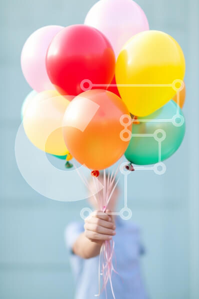 Intra Συλλεκτικό Ξύλινο Παζλ Plywood 4mm - Πολύχρωμα μπαλόνια που κρατούνται από ένα άτομο Σε Ξύλινο Κουτί - Διαστάσεις Puzzle: 10x10 cm – 25 κομμάτια