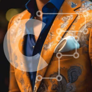 Intra Συλλεκτικό Ξύλινο Παζλ Plywood 4mm - Σοβαρός άνδρας με πορτοκαλί κοστούμι Paisley που κοιτάζει μακριά Σε Ξύλινο Κουτί - Διαστάσεις Puzzle: 10x10 cm – 25 κομμάτια