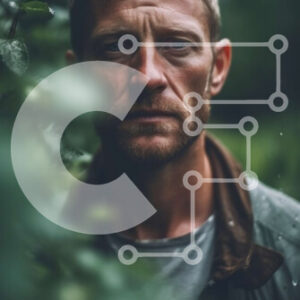 Intra Συλλεκτικό Ξύλινο Παζλ Plywood 4mm - Σοβαρός άνδρας με πράσινο σακάκι που στέκεται στο καταπράσινο δάσος Σε Ξύλινο Κουτί - Διαστάσεις Puzzle: 10x10 cm – 25 κομμάτια